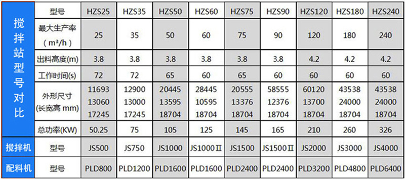混凝土搅拌站设备型号和参数大全